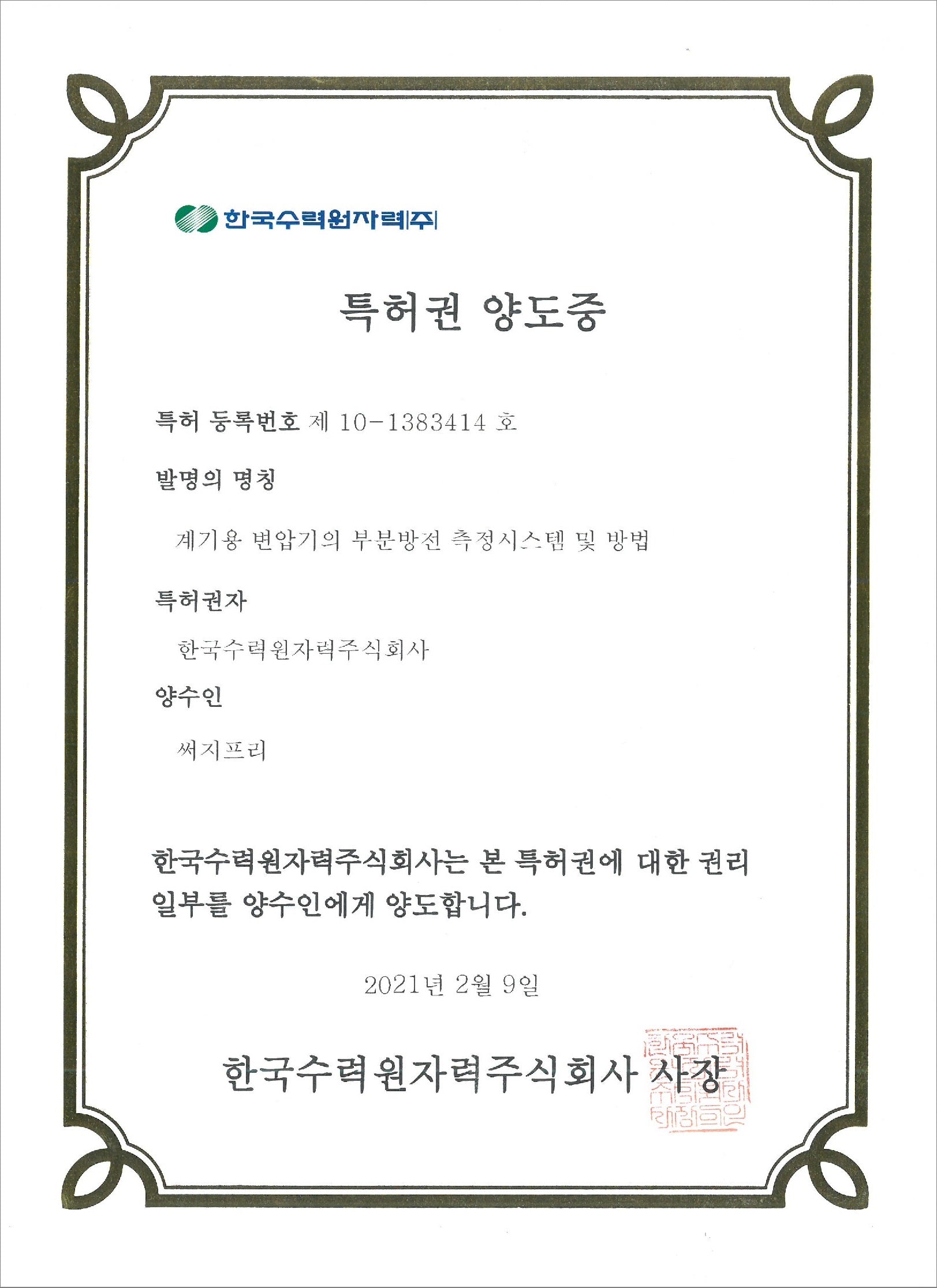 [특허] 1383414 계기용 변압기의 부분방전 측정시스템 및 방법