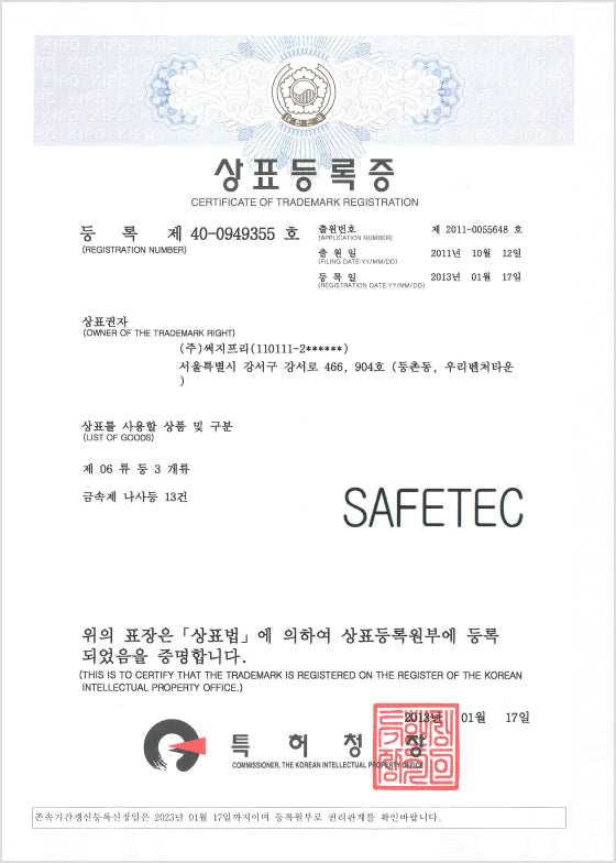 [상표] 국내 상표 949355 SAFETEC